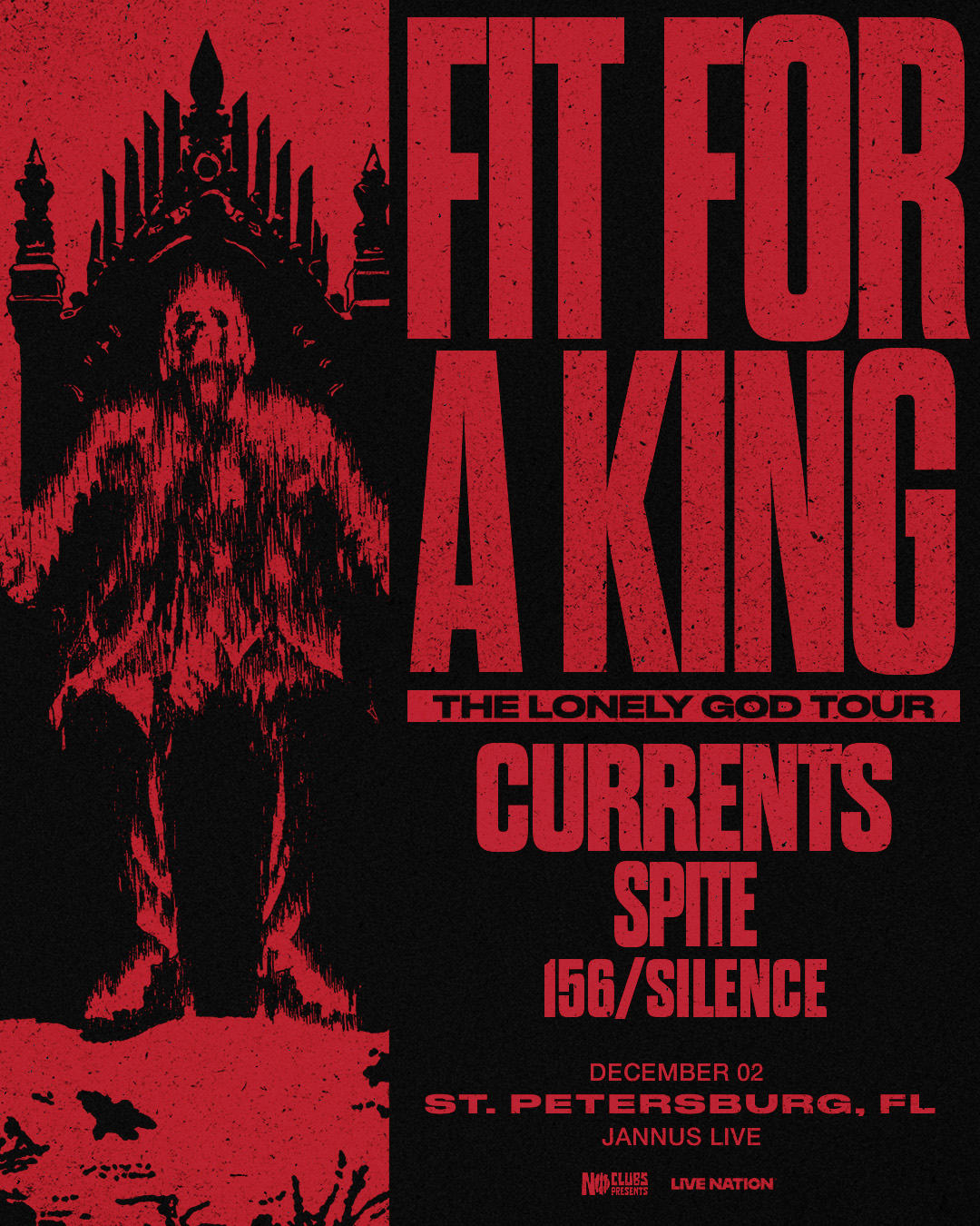 Jannus Live 200 1st Ave N STE 206,, St. Petersburg, FL, United StatesFit For A King: Lonely God Tour Date: Tuesday, December 2nd, 2025 Support: Currents, Spite and 156/Silence Doors: 6:00 p.m. Show: 7:00 p.m. GET TICKETS