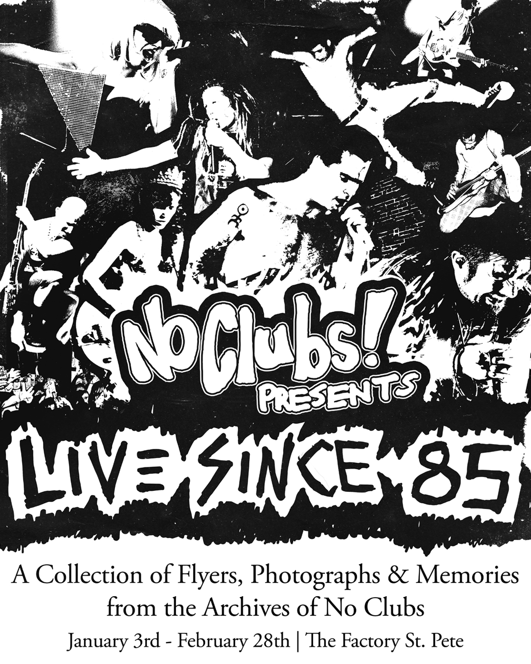The Factory St. Pete 2622 Fairfield Ave S, St Petersburg, FL, United StatesLive Since '85 Opening Night Party Date: Saturday, January 3rd, 2026 Free admission | Open to the public Join us at our opening night party for our Live Since '85 art exhibit! Explore 40 years of concert posters, fliers, and photos from legendary No Clubs shows — from the Ramones to Kendrick Lamar! Limited-edition merchandise […]